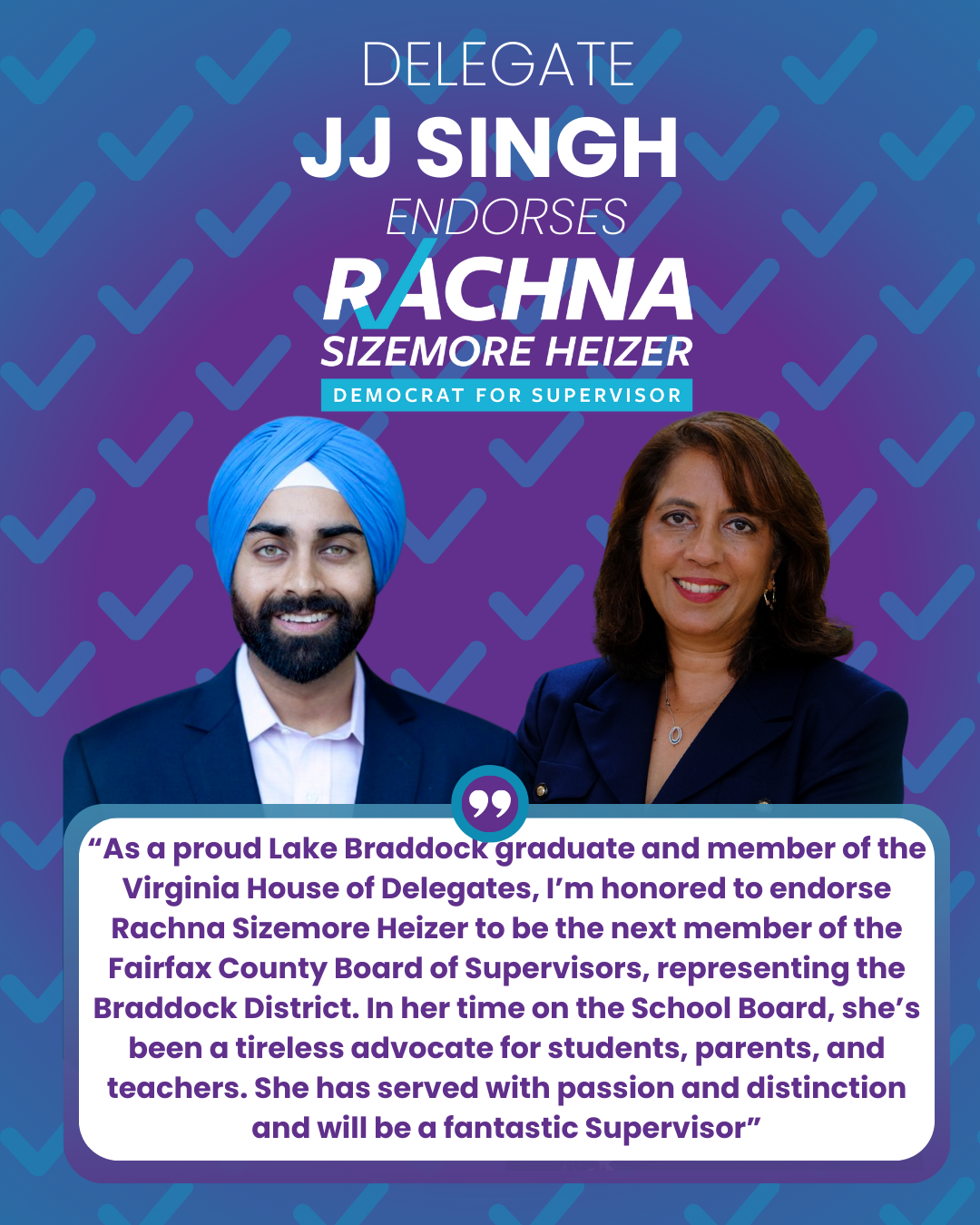 DEMOCRATS ARE UNITING BEHIND RACHNA FOR BRADDOCK SUPERVISOR